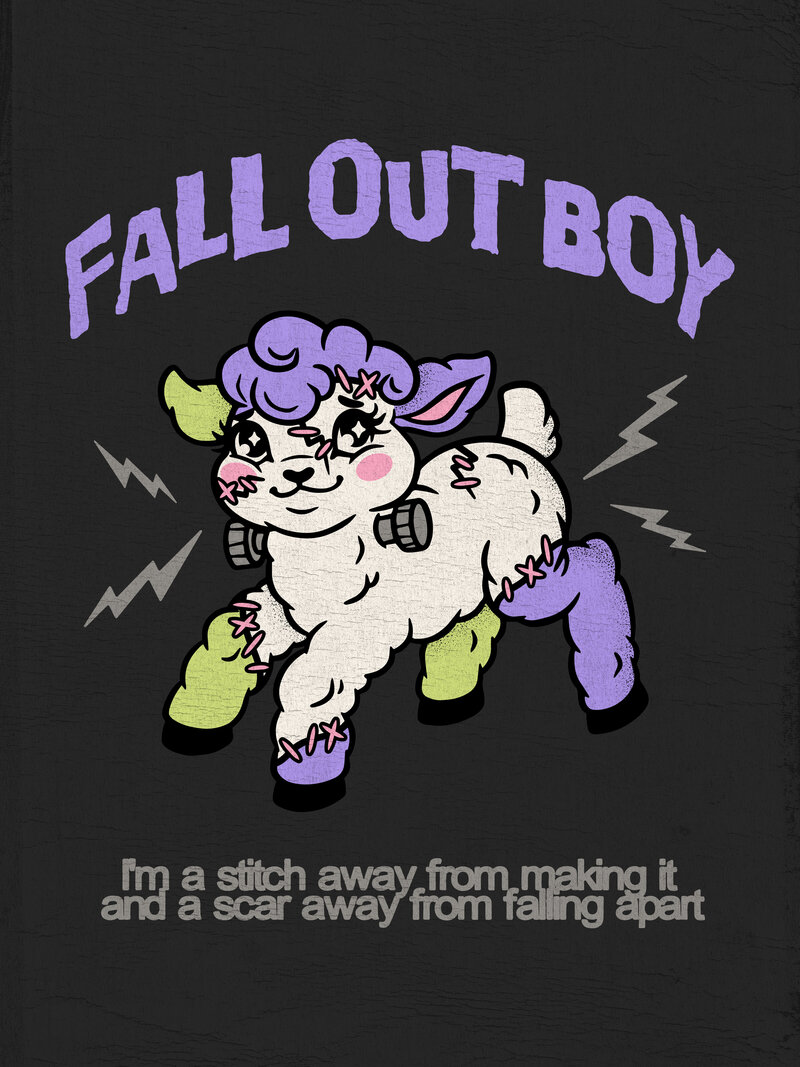 FALL OUT BOY *OFFICIAL* : Frankenlamb design created for Fall Out Boy from their new Halloween drop 🖤 featuring lyrics from "The (After) Life of the Party", available from their official online store for a limited time.